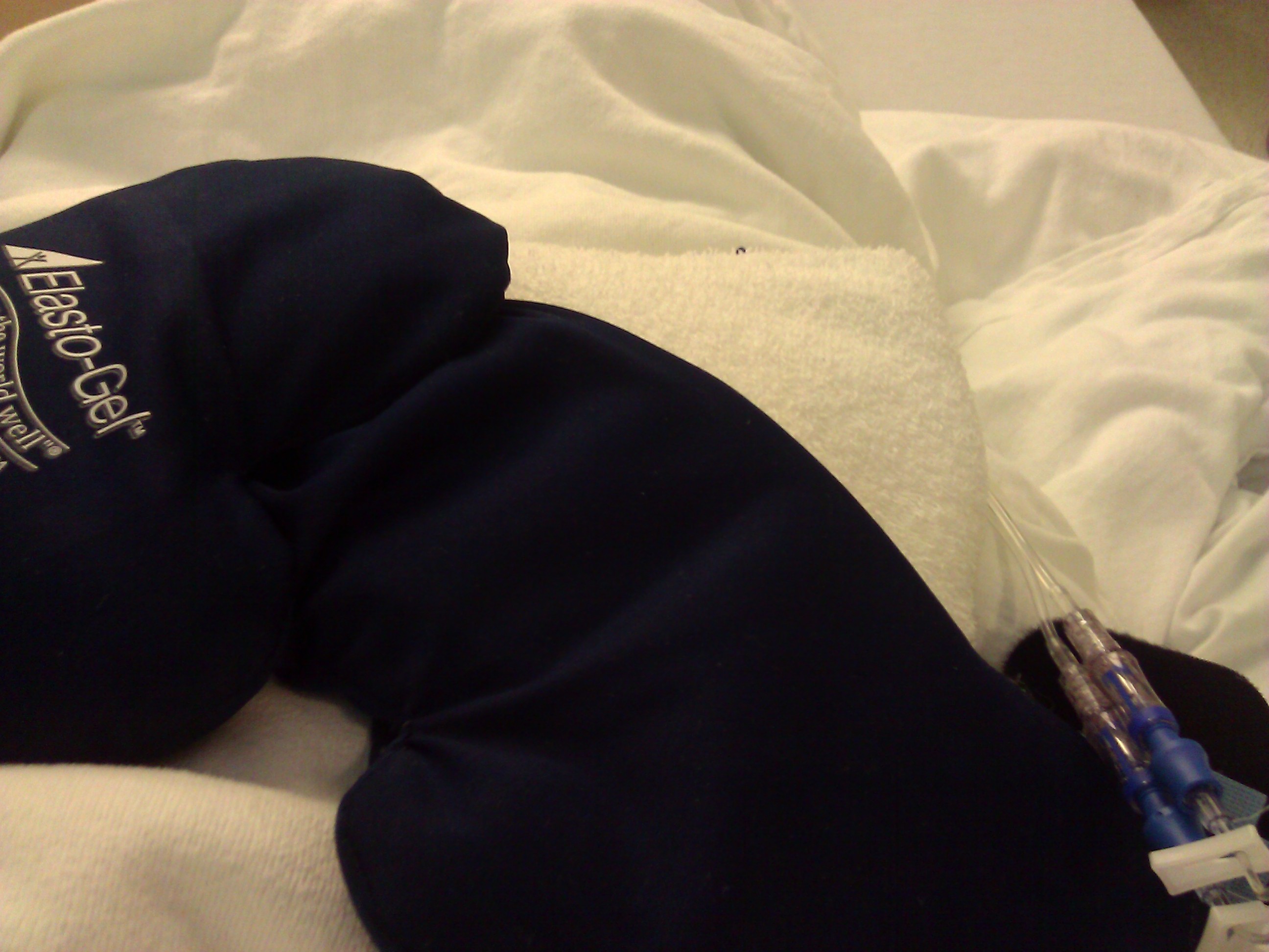 The only real complication I had while in the hospital was a little bit of an allergic reaction to the Taxotere infusion, so we had to stop down, give me an injection of Benadryl, which then made me feel kind of twitchy, like I needed to move around a lot, and then delayed the time of the chemo even more…